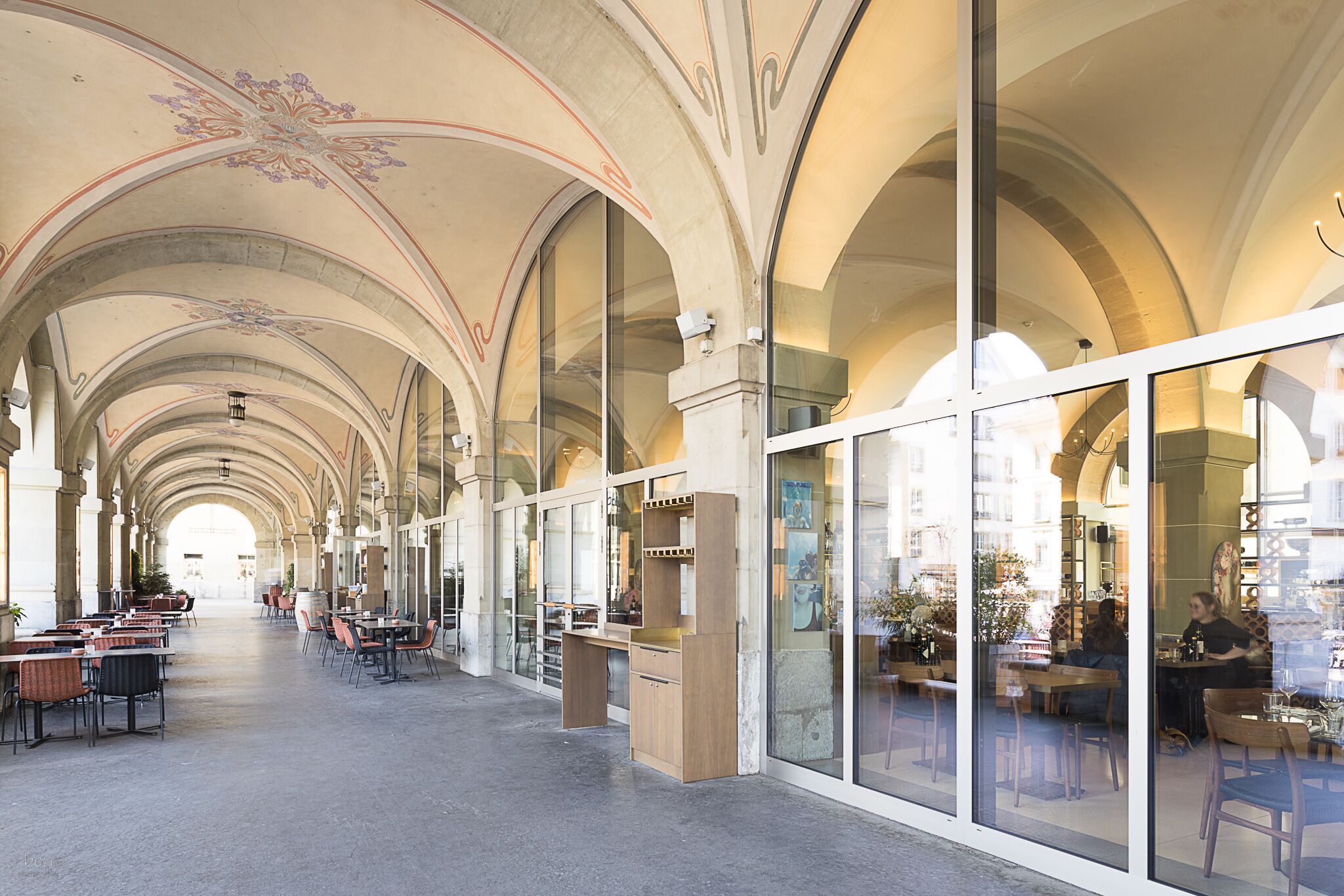 Aluminiumfenster mit Stichbogenausbildung, in denkmalgeschütztes Gebäude eingebaut.