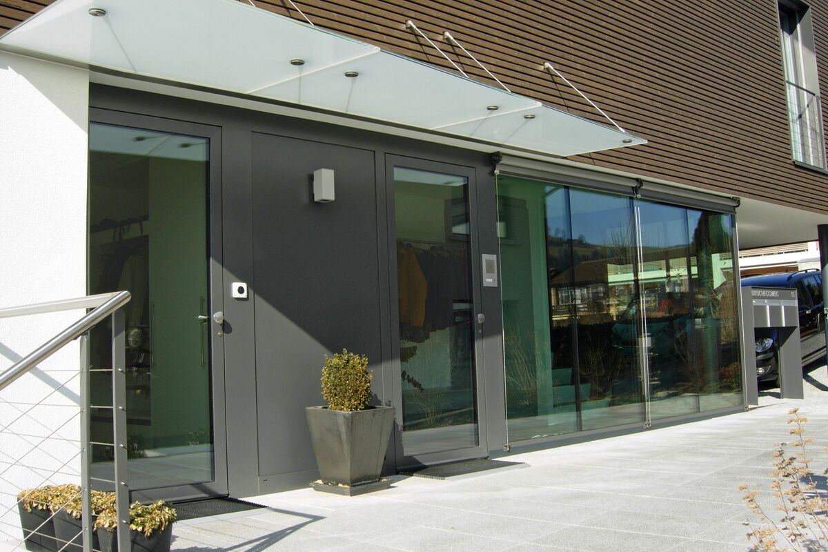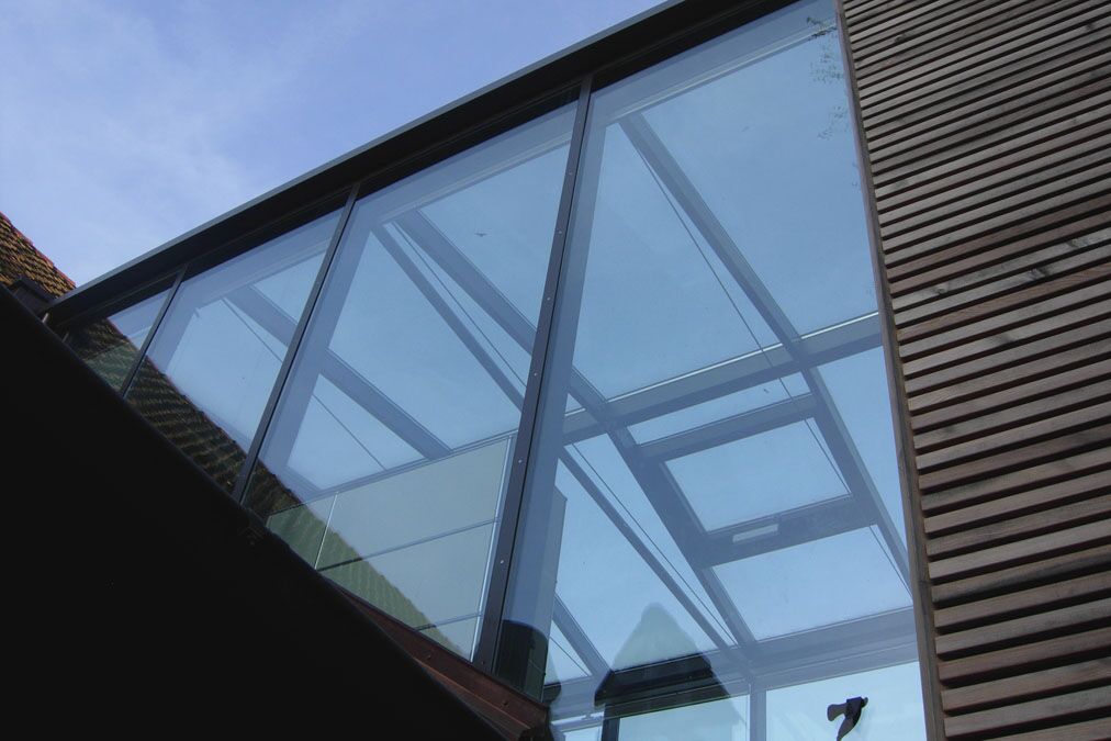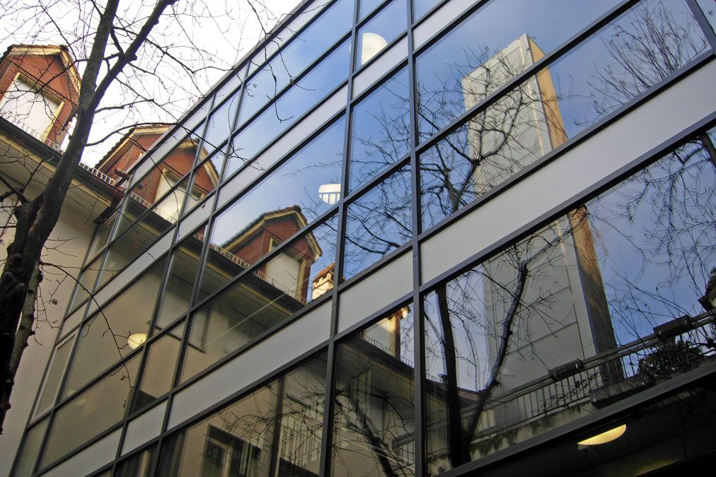 Pfosten-Riegelsystem als Eigenentwicklung, mit erhöhten ästhetischen Anforderungen.