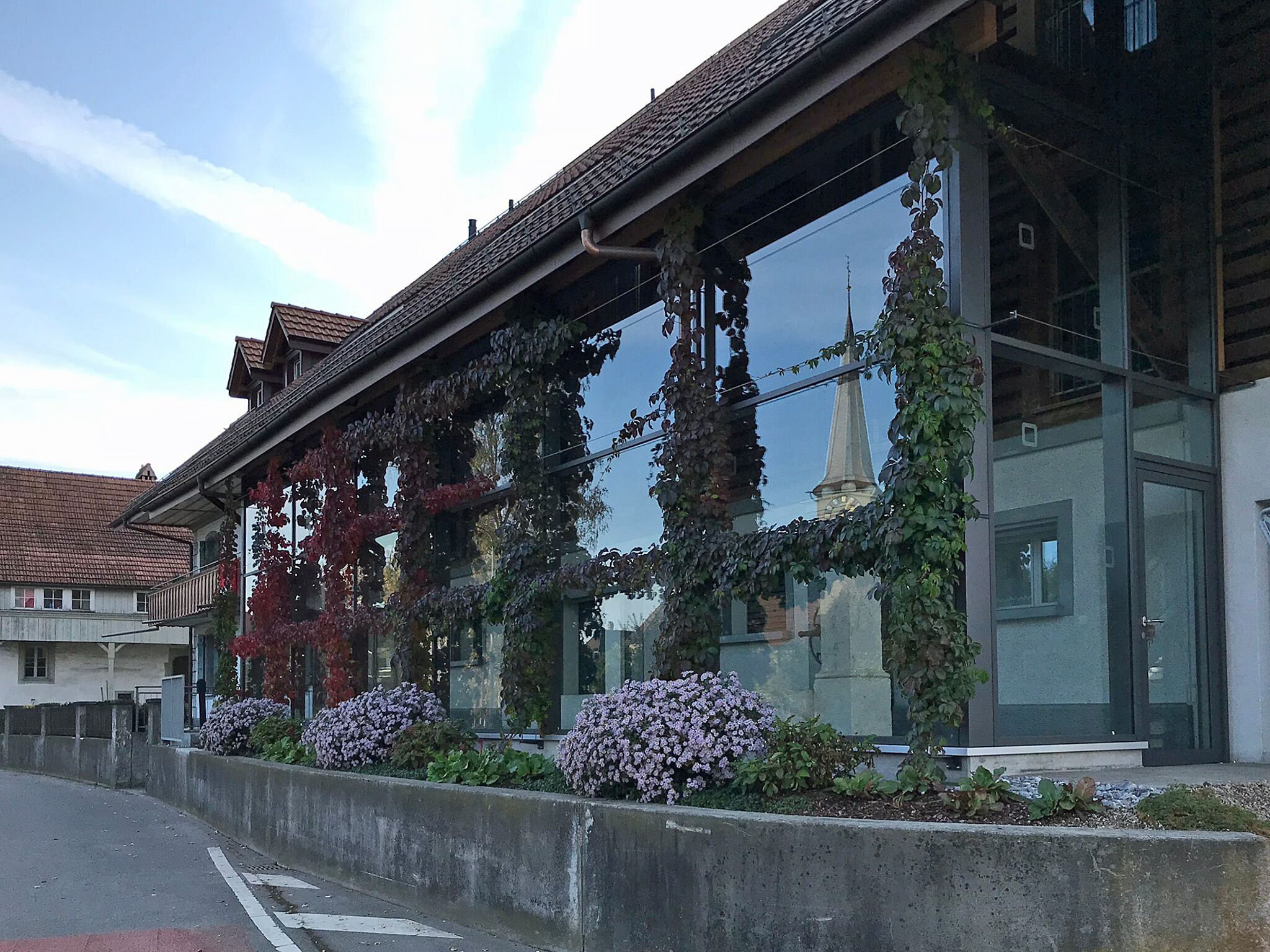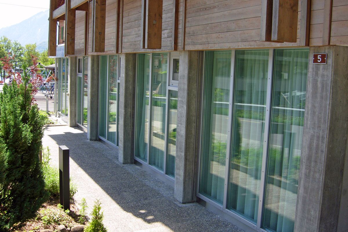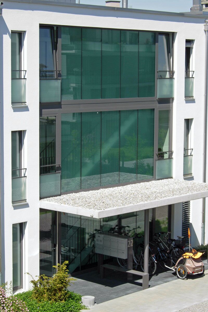 Fassade mit Lärmschutzanforderung und Bepflanzung