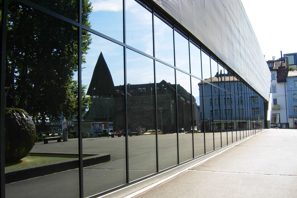 Pfosten-Riegelfassaden bieten den Vorteil, dass sie sehr schlanke Profilansichtsbreiten aufweisen. Die Gläser werden im Gegensatz zu einem üblichen Rahmensystem von aussen eingesetzt. Dies ermöglicht den Einbau von grossen Gläsern unabhängig von der Zugänglichkeit von innen.
