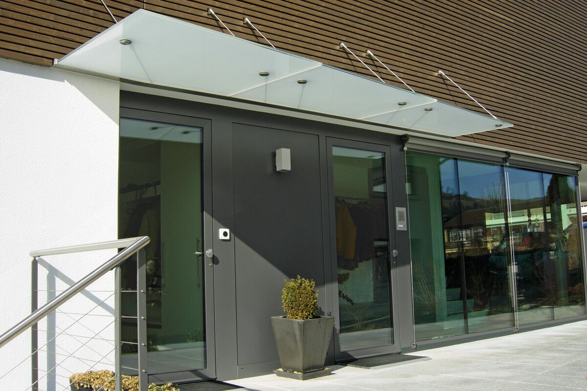 • Glasvordächer in verschiedenen Spezialausführungen
