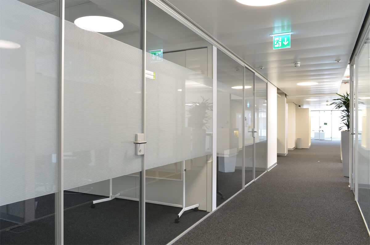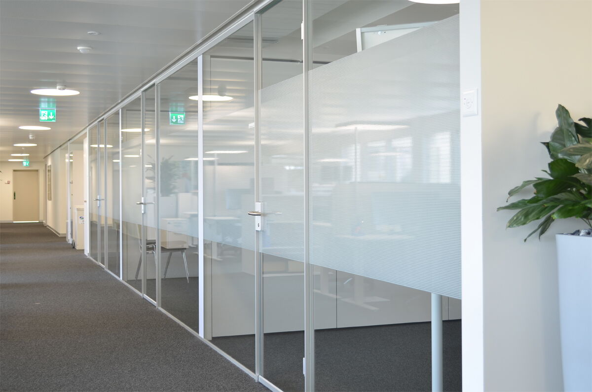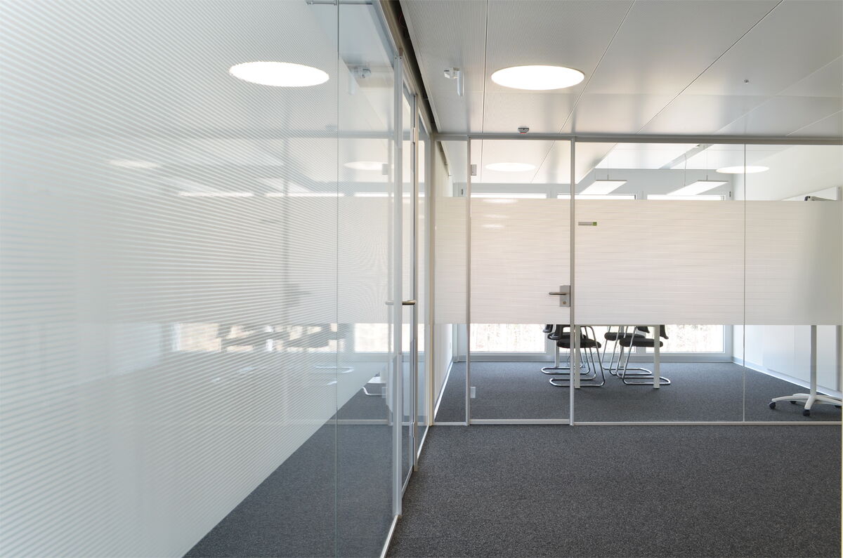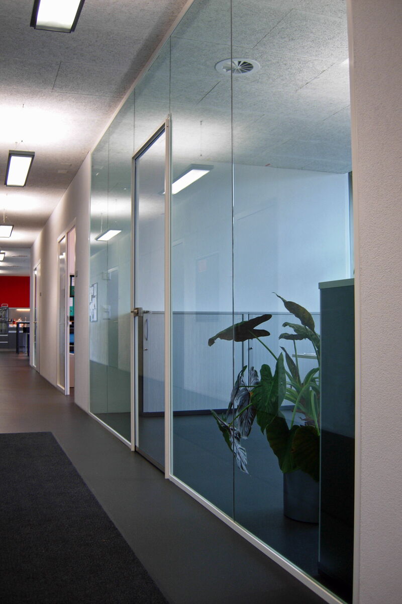 Ausführung schalldämmend, Ganzglasabschlüsse zu Büros und Besprechungsräumen