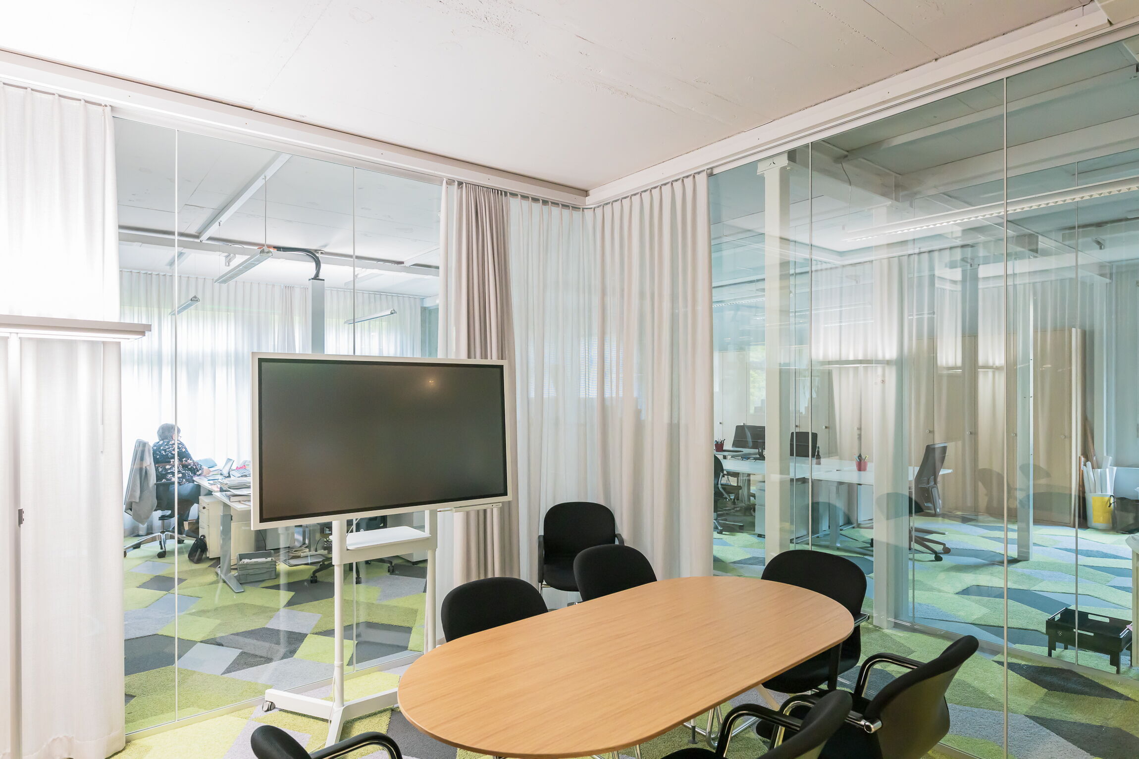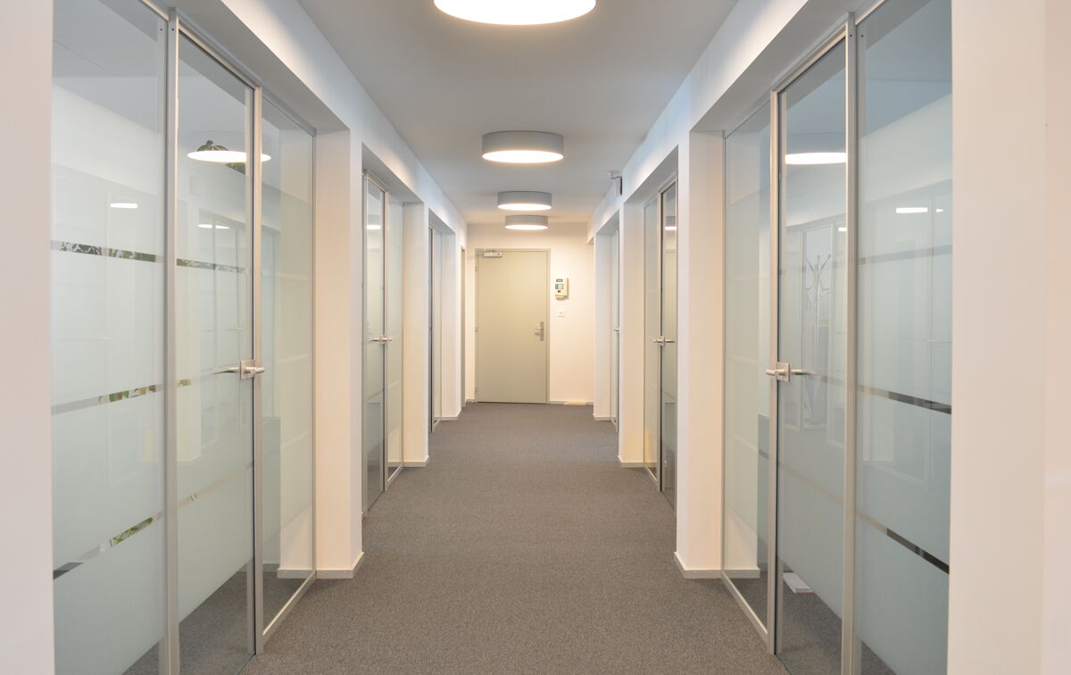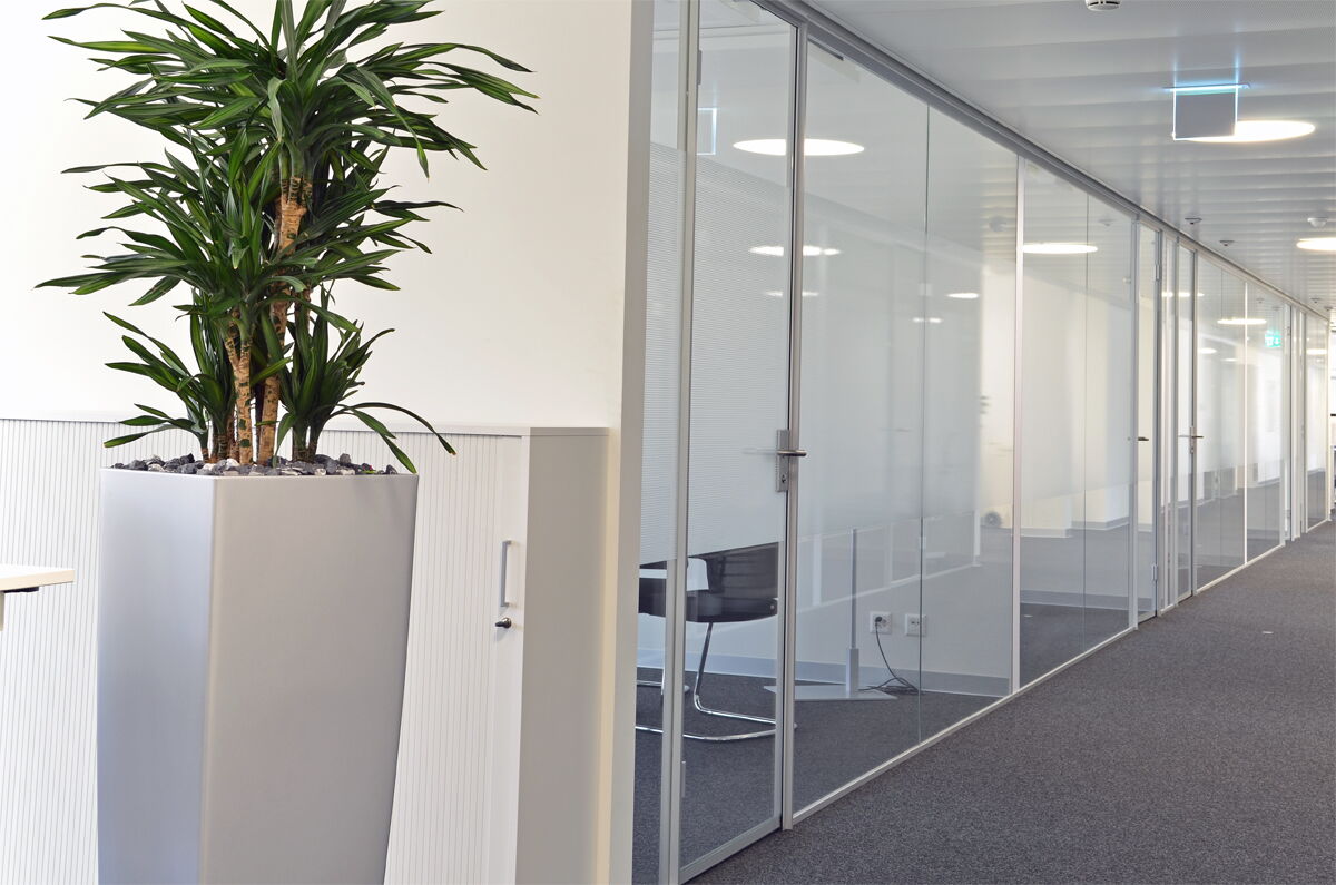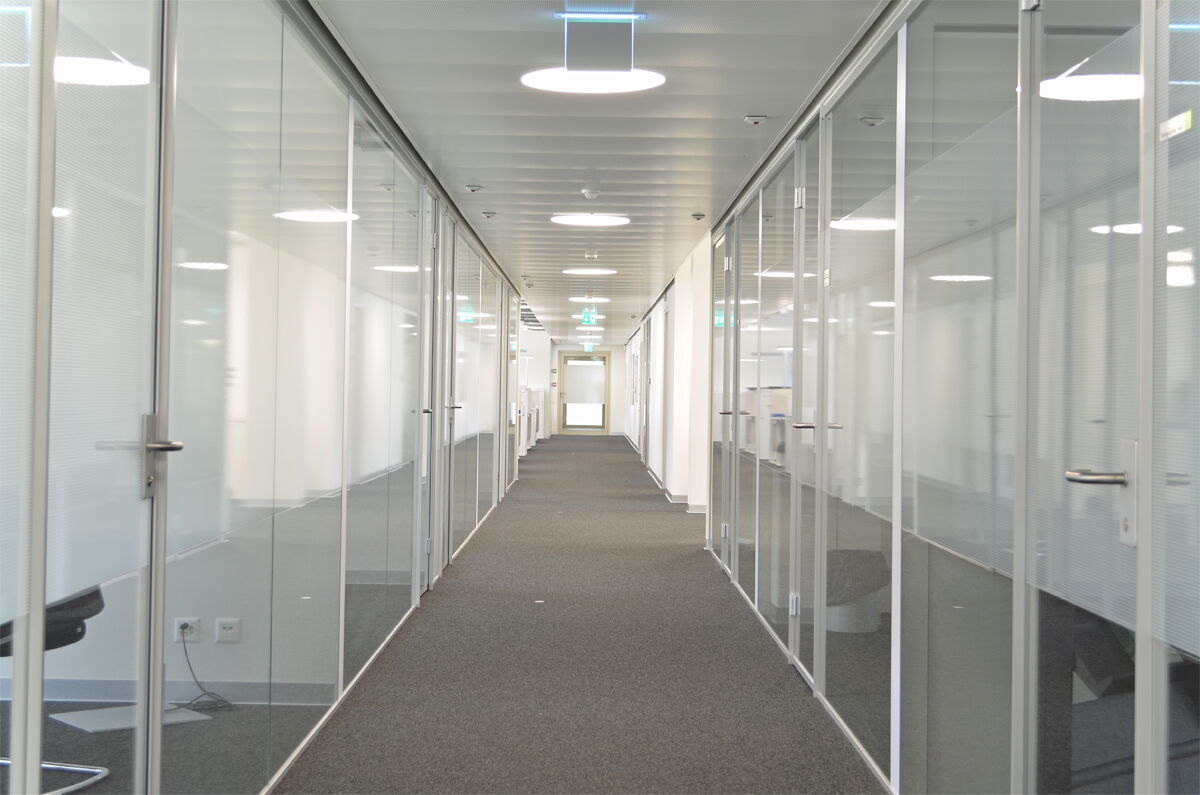Ausführung schalldämmend, Ganzglasabschlüsse zu Büros und Besprechungsräumen