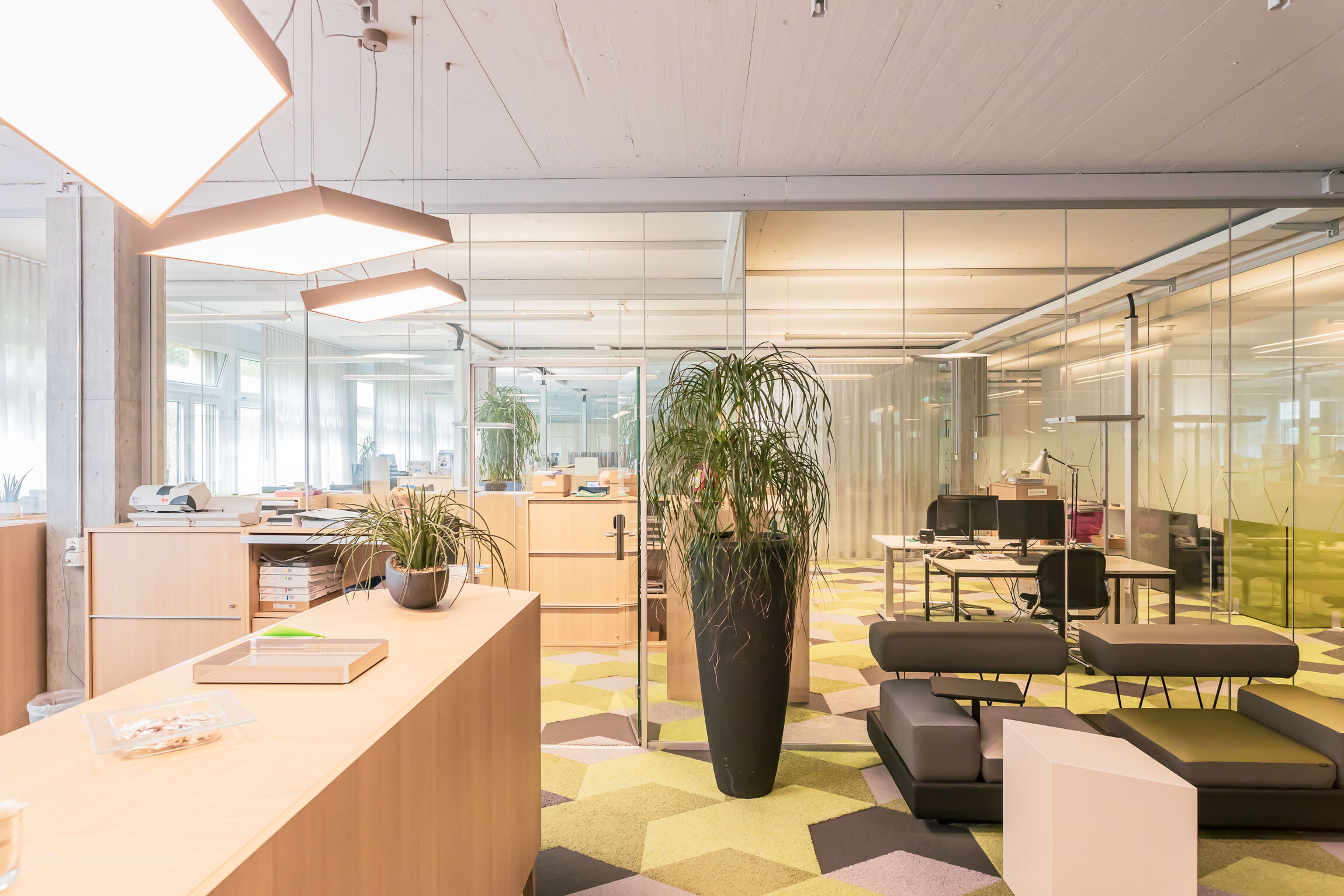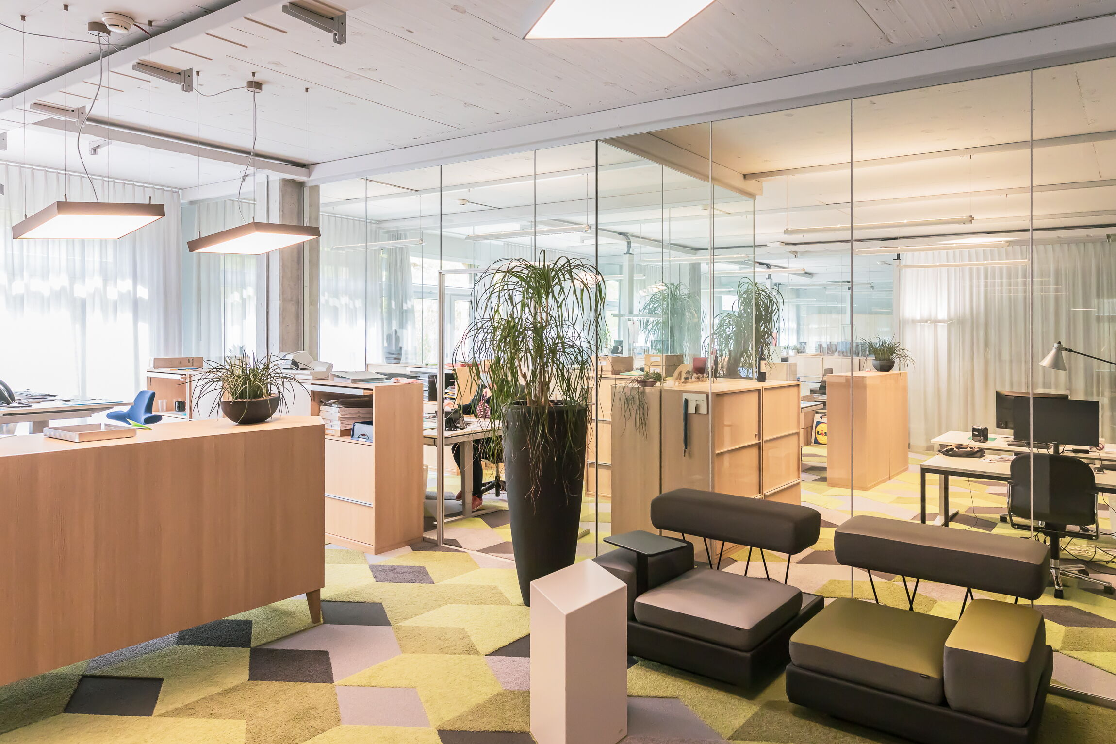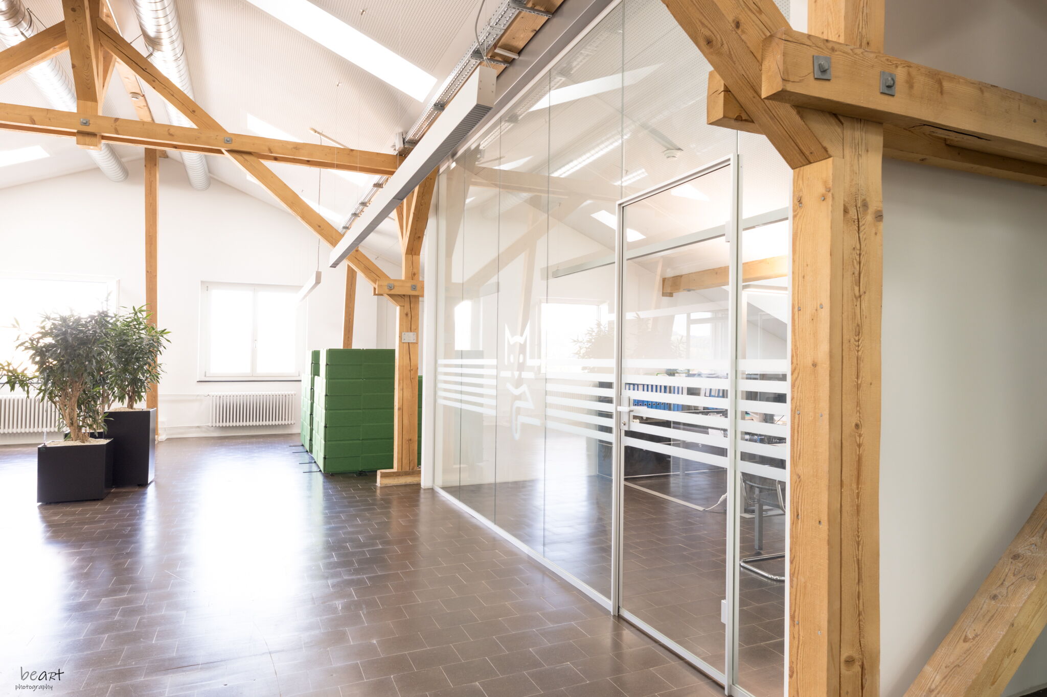 Bürotrennwände, teilweise schalldämmend, Gestaltung mit Farbfolie